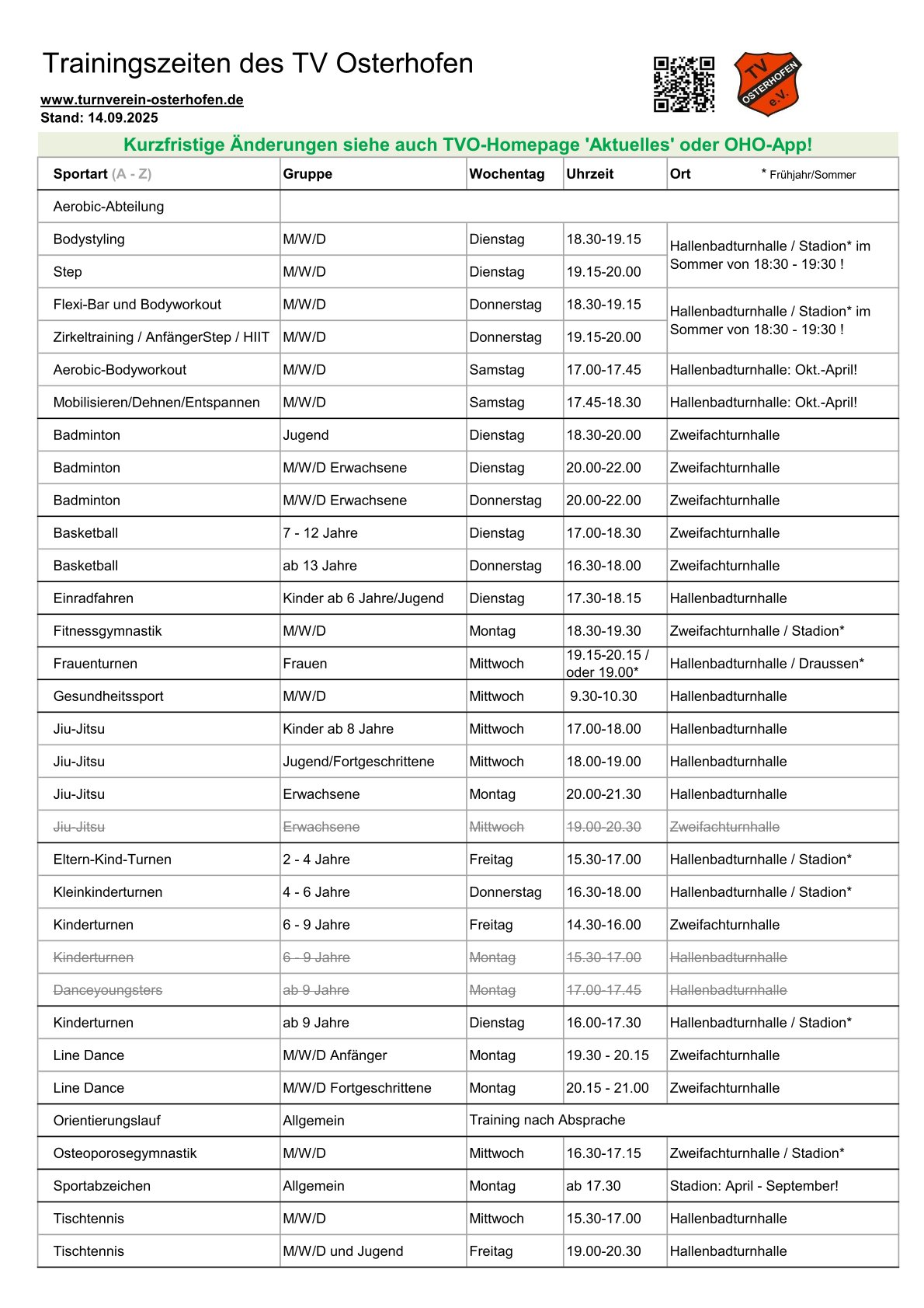 Aktuelle Trainingszeiten